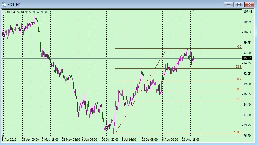 Dalším významným cenotvorným faktorem bude průběh summitu v Jackson Hole v USA. V pátek v 16:00 na něm promluví i sám šéf FEDu Ben Bernanke. Ten by mohl investorům prozradit, v jakém stavu je dle názoru centrální banky ekonomika USA a jestli plánuje pomocí nástrojů monetární politiky podpořit americké hospodářství nebo nikoliv. Ropa se obecně považuje za rizikové aktivum, a tedy s uvolňováním peněžním zásoby její cena roste. V případě, že by šéf FEDu jakýmkoliv způsobem naznačil další možnost kvantitativního uvolňování, mohla by ropa WTI vyšplhat až na úroveň 100 dolarů za barel.