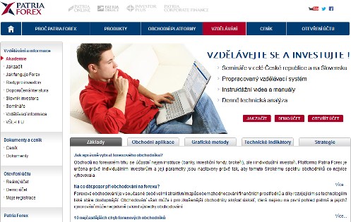 - Webináře – na nových stránkách Patria Forex v sekci Vzdělávání naleznete také možnost zúčastnit se internetových vzdělávacích webinářů z pohodlí Vašeho domova, případně shlédnutí jejich videozáznamu