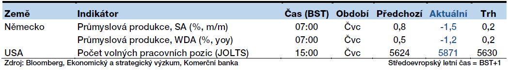 Kalendář dnešních ekonomických událostí na globálních trzích: