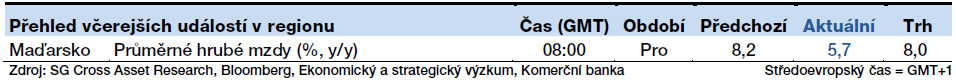 Evropské sentiment indikátory pokračovaly v březnu v sestupu z extrémně vysokých hodnot z počátku roku. I tak zůstávají vysoko a poukazují na vysokou růstovou dynamiku v Evropě během prvního čtvrtletí. Měnový přehled pak ukáže na zvyšující se úvěrovou dynamiku v eurozóně. Je otázkou, zda bude vzestup americké spotřebitelské důvěry dostatečný k tomu, aby zvrátil aktuální trend posilujícího eura. Z regionu se dočkáme zasedání maďarské centrální banky. Změnu v nastavení měnové politiky nečekejme, rétorika centrálních bankéřů zůstane holubičí. -