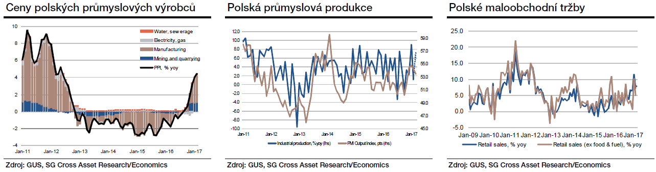 Březen by měl být pro Polsko ve znamení silných dat z reálné ekonomiky. Očekáváme akceleraci průmyslové výroby podpořené kalendářním efektem (jeden pracovní den navíc) ve světle příznivých PMI. Silné maloobchodní tržby jsou pak důsledkem nejenom rostoucí zaměstnanosti a mezd, ale i vládní politiky podpory rodin s dětmi.