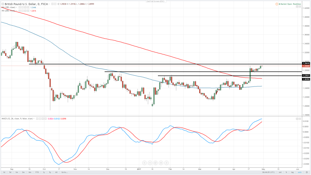 Dnes to bude pro obchodníky těžký den a začne daty HDP z Velké Británie za první kvartál 2017. Roční báze by si měla polepšit na 2.2% z 1.9% naposledy, avšak kvartální změna se očekává se zpomalením z 0.7% na 0.4%.