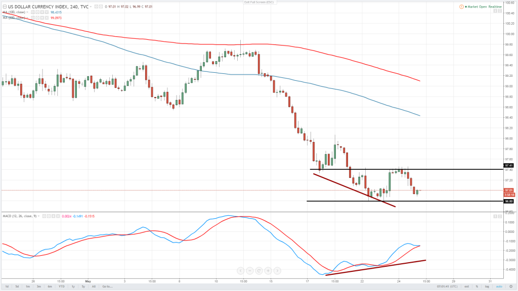 Americký dolar se obchodoval ve ztrátě ve čtvrtek ráno a dolarový index se nacházel při úrovni 97.00 během Londýnské seance, což představovalo cca 0.15% denní ztrátu.