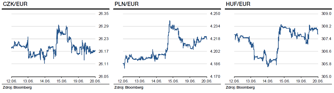 Američtí centrální bankéři by ve svých vystoupeních měli podpořit výhled na utaženější měnovou politiku i navzdory rostoucím pochybnostem o vývoji spotřebitelské inflace. Polská data ukáží na solidní výsledky reálné ekonomiky v květnu. Na druhou stranu ovšem dynamika průmyslových cen zpomalila v důsledku efektu statistické základny cen ropy.