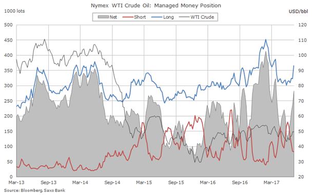 Ropa se v posledních týdnech výrazně zotavila a opustila třetí neúspěšný cyklus odprodeje krátkých pozic. Ke konci července skončil cyklus minim nízkých cen, který jsme sledovali od maxima v prvním čtvrtletí, což vedlo k obnovení nákupního zájmu. To způsobilo 18% nárůst čistých dlouhých pozic minulý týden na 282 tisíc lotů, což je patnáctitýdenní maximum.