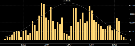- nejvíce obchodů zrealizováno na ceně 1.2898