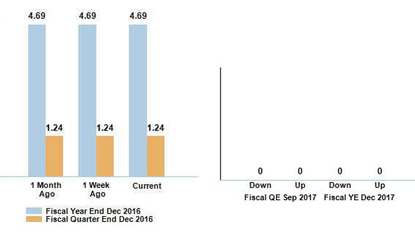 Za fiskální rok končící prosincem 2017 konsensus EPS zůstal v minulém týdnu stejný – 6,6 a zůstal stejný v posledním měsíci na úrovni 6,6. nikdo nezvedl a nikdo nesnížil jejich předpověď.