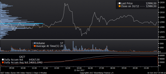 Důležité úrovně podle celkového volume na jednotlivých cenách (DAX future Dec17)