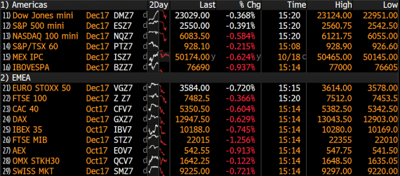 Evropský akciový index Stoxx Europe 600 dnes ztrácí necelé procento a prochází si největší korekcí za poslední dva měsíce. Příčinu výprodejů není těžké uhádnout a už jsme se o ní dnes ráno zmiňovali na tomto místě. Po vypršení ultimáta, které dal Madrid Katalánsku, dnes španělská vláda naznačila, že by mohla už příští týden poprvé v historii aktivovat článek 155 ústavy a přímo převzít kontrolu nad regionem, který si v referendu začátkem října odhlasoval nezávislost. Evropské akcie jsou tak kompletně v červených číslech, když jsou pod tlakem všechny významné sektory. Španělská krize tedy začíná poprvé výrazněji doléhat i na ostatní evropské trhy a nevyhýbá se ani indexům v USA, které čtvrteční seanci zahájily mírnou korekcí.