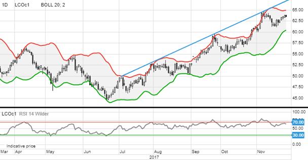 Předpokládané prodloužení omezení těžby v kombinaci s geopolitickými riziky a nedávnými problémy kanadského ropovodu podpořily od počátku října růst cen ropy o 20 %. Předpokládá se, že OPEC a Rusko chtějí nadále podpořit růst cen a pokračovat v procesu vyrovnávání globálního ropného trhu, tedy že na svém čtvrtečním jednání ve Vídni oznámí prodloužení dohody o omezení těžby o dalších šest až devět měsíců.