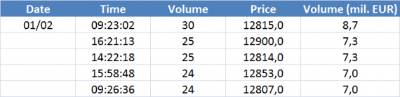 Největší obchody podle objemu na DAX future Dec17