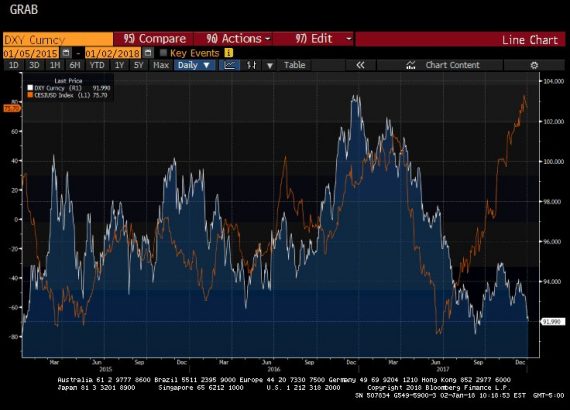 Index ekonomických prekvapení v USA sa od letných miním vyšplhal na najvyššie úrovne od roku 2012. V nedávnej minulosti vykazoval tento index určitý vzťah s dolárovým indexom. Ten v posledných mesiacoch neplatí. Otázka je, či to je trvalý jav, alebo sa nožnice časom začnú zatárať a dolár posilní (@luttonpc):