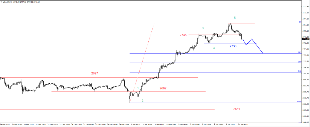 V tuto chvíli očekáváme další výběr zisků, který by nás měl zavést pod support 2722 bodů. Následující supporty jsou na úrovních 2690 a 2665 bodů. -
