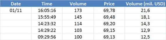 Největší obchody podle objemu na Brent (aktivní future kontakt)