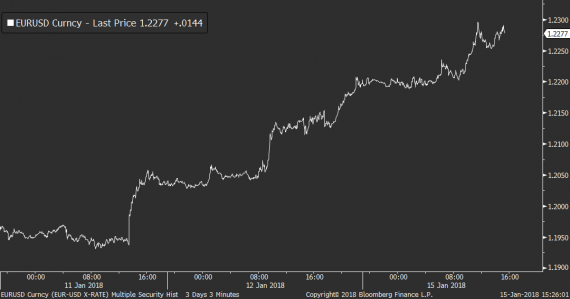 Páteční breakout už poslal euro na dosah 1,23 EURUSD, akciové trhy zatím vyčkávají