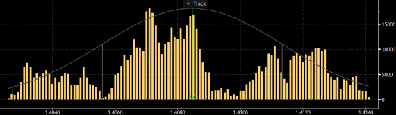 - nejvíce obchodů zrealizováno na ceně 1.4071