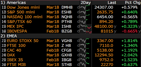 Akciové indexy v Evropě dnes navázaly na příznivý close páteční seance v USA a od rána se drží v zelených číslech. Veškeré zisky přitom plynou především z ranního gapu a během dopolední a odpolední seance indexy zatím své pozice na solidních objemech pouze udržují. Německý DAX se díky tomu drží nad hranicí 12 300 bodů a přidává 2 %. V zelených číslech se pak pohybují také futures na americké indexy, které se prodávají 0,6 % nad pátečním close.