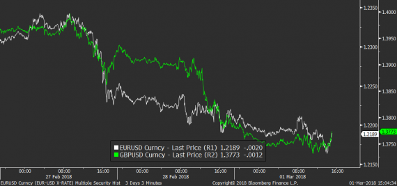 Nově příchozí makro dnes ze zajetých kolejí nijak výrazně nevybočilo. Indexy výrobní aktivity v Británii, Španělsku a v Itálii zůstávají na vysokých úrovních a signalizují pokračující expanzi výrobního sektoru. Ten sice už dál nezrychluje, ale jeho kondice zůstává i nadále velmi dobrá. Spojené státy zveřejnily statistiky počtu nově podaných žádostí o podporu v nezaměstnanosti, které klesly na pouhých 210 tis., což je nejlepší výsledek od roku 1969. Podle očekávání pak skončily výsledky růstu osobních příjmů a výdajů, které se zvyšovaly o 0,4 % a 0,2 %. Dopad nového makra na trhy byl ale zanedbatelný.