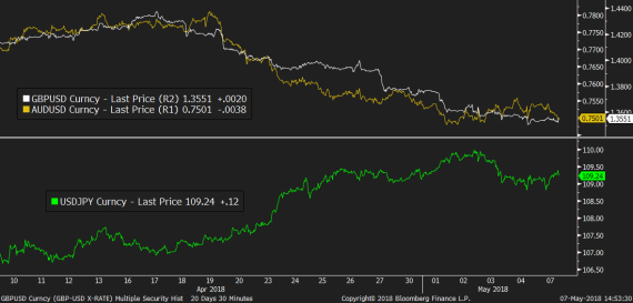 Na komoditním trhu se situace oproti minulému týdnu také výrazněji nemění. Zlato se stříbrem i nadále hledají pevnější půdu pod nohama, zatímco cena ropy pokračuje v růstu s tím, jak se blíží termín, kdy by měl americký prezident rozhodnout o tom, zda odstoupí od jaderné dohody s Íránem nebo nikoliv. Trump by svůj verdikt měl oznámit už 12. května a vzhledem k jeho dřívějším komentářům jsou hlavně medvědi na ropě značně nervózní.