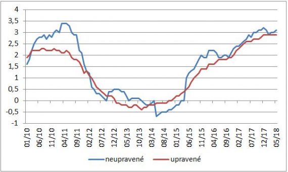 A to sa zatiaľ nedeje. Aprílový prieskum úverových podmienok ukázal, že banky ich uvoľňujú a plánujú ich uvoľňovať aj naďalej a potvrdili to aj dnešné tvrdé čísla od ECB ohľadom vývoja úverovania. Tým najdôležitejším indikátorom je zmena úverovania podnikovej sfére. Jej medziročný rast v máji zaznamenal 2,7%, čo bolo najviac od krízy. To isté platí aj pre medziročný rast upravený o predaje úverov a balíkov úverov, ktorý dosiahol 3,6%. V máji dokonca medziročný rast zrýchlil, na neupravenej báze bolo zaznamenané najväčšie zrýchlenie od januára 2016, o 0,4 percentuálneho bodu. Z hľadiska úverovanie je teda v ekonomike eurozóny všetko v poriadku.