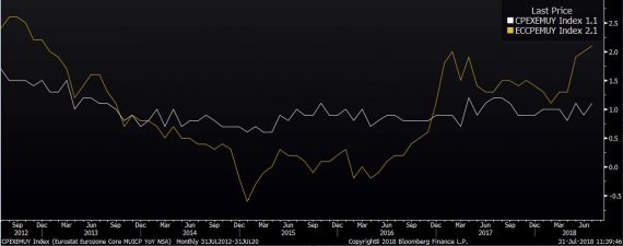 Aby som to zhrnul, tak dnešné dáta sú pre politiku ECB neutrálne. Inflácia síce bola vyššia než sa čakalo, a je po dlhých rokoch opäť nad cieľom, jadrová inflácia však zrejme podstrelí prognózu ECB pre rok 2018. Na druhej strane, HDP bude takmer určite nižšie ako počíta ECB, a pravdepodobne sa dočkáme revízie prognózy rastu ekonomiky nadol už na septembrovom zasadnutí.