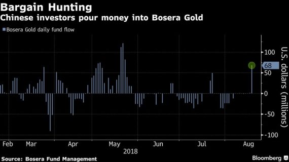 Vývoj prílevu/odlivu kapitálu do čínskeho ETF Bosera Gold (graf od @jessefelder)