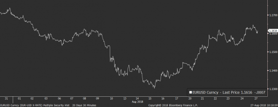 Lepší čísla zatím ale nechávají býky na euru v klidu. Euro za sebou má totiž úspěšný týden, díky kterému se na páru s dolarem vyhouplo nad hranici 1,16 EURUSD.