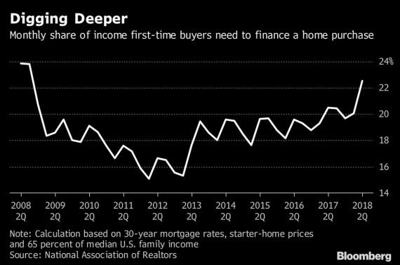 V minulom týždni som písal o slabších predajoch domov v USA, hlavným dôvodom sa javia byť vyššie ceny v kombinácii s drahšími hypotékami. Tí, ktorí kupujú dom prvý krát, musia na mesačnú splátku v priemere minúť viac ako 22% zo svojho príjmu. Naposledy to bolo takto vysoko pred krízou. Normál z posledných rokov bol pod 20%. Trh s bývaním by teda mal byť v najbližších kvartáloch o niečo chladnejší ako v predošlých rokoch (@trevornoren):