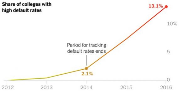 Ďalšia zaujímavá a nepekná správa z USA. Keď vláda prestala zverejňovať podiel dlžníkov s omeškanými splátkami v rámci študentský pôžičiek v roku 2014, tak dosahoval tento ukazovateľ 2,1%. Aktuálne je to podľa odhadov viac ako 13%. Problémy bankám nehrozia, keďže tento dlh garantuje vláda. Ukazuje sa však, že tento program je dosť fail. V konečnom dôsledku to vyjde vládu draho (celkový objem študentských pôžičiek presahuje 1,5 bil. USD, teda zhruba 8% HDP) a štátna garancia zdeformovala trh s vzdelaním tak, že poplatky išli prudko nahor, keďže študentom na školné požičal štát (@EduBenM):