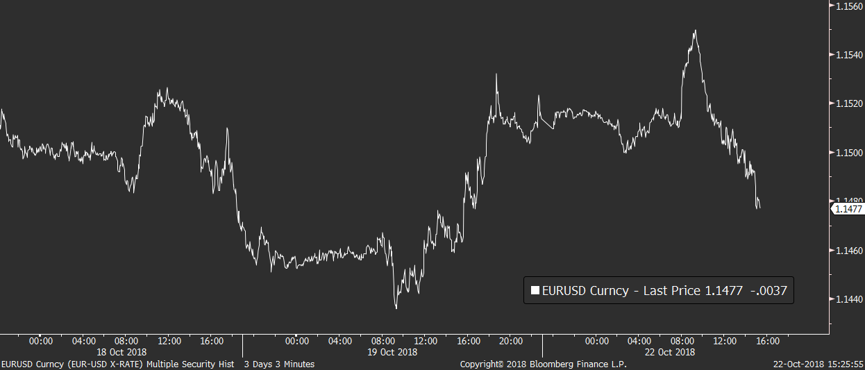 Pod tlakem je pak vůči dolaru také euro, na které naopak doléhá vidina zítřejšího odmítnutí italského rozpočtu ze strany Evropské komise, která by jej Italské vládě měla vrátit k předělání.